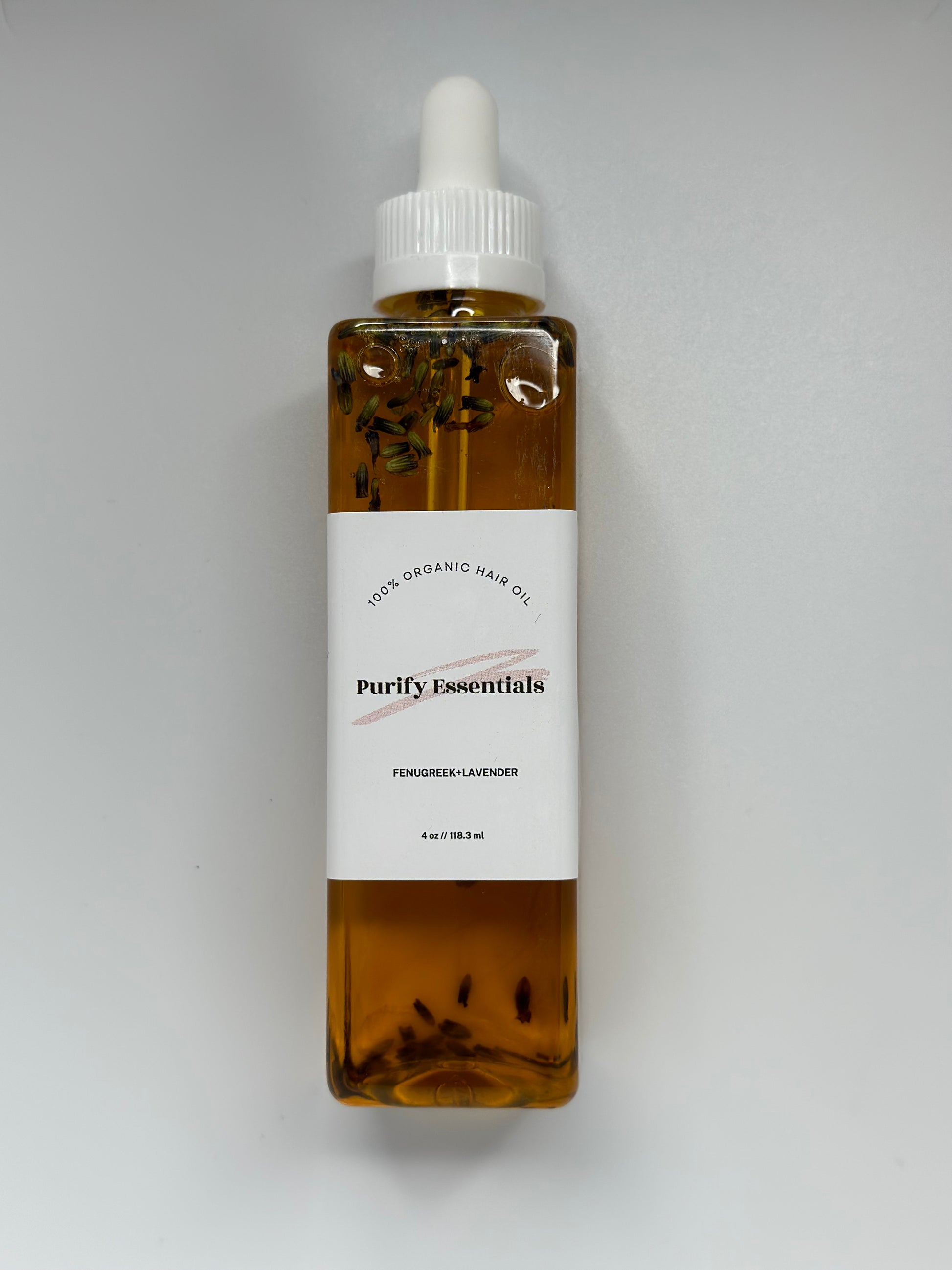 Luxurious hair oil blended with 100% organic ingredients. This Fenugreek and Lavender blend helps nourish hair from the inside out.